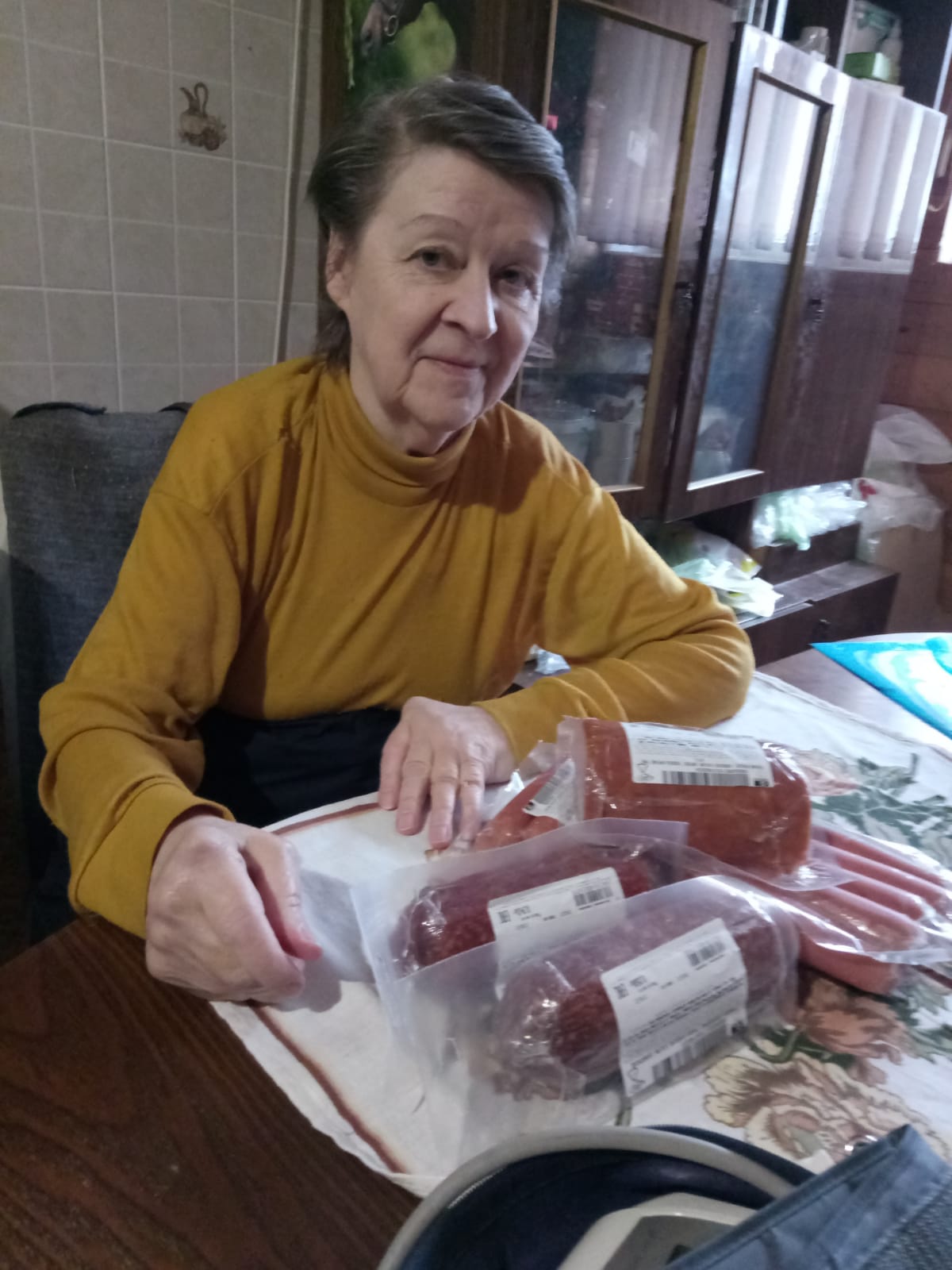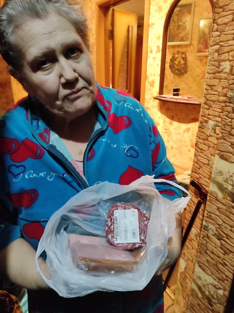 В январе 2023 года все наши подопечные получили помощь в виде мясного продуктового набора.