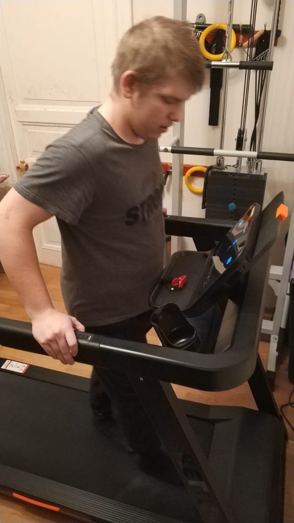 Для поддержания и укрепления мышц, развития координации и предотвращения мышечной атрофии мальчику рекомендованы систематические тренировки, а с помощью беговой дорожки у него появится возможность ежедневно заниматься и закреплять лечебный эффект дома.